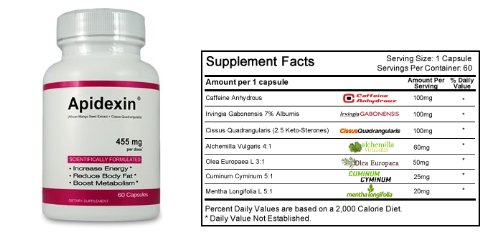 1 Bottle, 60 Capsules Apidexin. APIDEXIN is even stronger than Prescription Weight Loss Medications. In order to accomplish this tremendous feat we had to use ingredients that were: 1. Clinically Proven 2. Patented or Patent-Pending 3. And Produce Visible Results Fast! The Science Behind Apidexin's 8 Patent-Pending Ingredients: Wakame Seaweed Standardized to 10% Fucoxanthin - Japanese Wakame seaweed, thought to be one of the first types of marine vegetation originating on the planet over one billion years ago, may hold the key to staying slim plus healthy. New scientific studies are suggesting that a pigment in this Japanese Wakame seaweed found in the form of a carotenoid called Fucoxanthin, may hold answers to targeting plus reducing abdominal fat. Fucoxanthin is a carotenoid, a natural compound derived from seaweed that is responsible for its brown coloring. Fucoxanthin has thermogenic properties that can help increase the body's metabolic rate. It may support healthy liver function, an important factor in weight management since the liver promotes the efficient utilization of fat plus facilitates the removal of cholesterol by-products from the bloodstream
