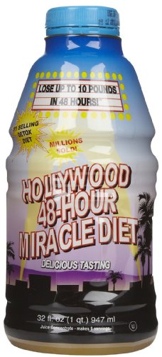 | 73 of 76 people found the following review helpful Amazon Verified Purchase This review is from: Hollywood 48-Hour Miracle Diet, 32-Ounce Bottles (Pack of 2) (Health plus Beauty) I was attracted at first to the promise of losing 10 lbs in two days, but I also know that it isn't possible to lose that much fat in that short of a time period. The juice tasted good plus surprisingly I didn't feel hungry on the first day! I also drank plenty of water with it. I just craved my favorite foods!! By the end of the first day I had lost 6 lbs, plus I felt great! I was proud for sticking to the diet. But I also know that the weight I lost was water weight, not fat. Nevertheless, my clothes fit better because I retain fluid easily plus my belly always feels bloated. This product eliminated that. I use this now if I will be going out or wanna look plus feel a little slimmer. BEWARE: I would not recommend doing this more than one day, because it is only 400 calories. The next morning I felt dizzy plus sick to my stomach because my body needed calories to function. If you buy this, just remember that you are not losing several lbs of fat, but mostly water! For me it... Read more 11 of 12 people found the following review helpful By R.W. "nasty_red" (Ohio) - See all my reviews Amazon Verified Purchase This review is from: Hollywood 48-Hour Miracle Diet, 32-Ounce Bottles (Pack of 2) (Health plus Beauty) Wow... What a great product, this product does work, I lost 9 lbs. utilizing it, it does take some discipline, but after the first day, you will be okay. When you smell food, you will get hungry, but just take a swig of juice, plus you will be okay, great product, I am going to use it again. 10 of 14 people found the following review helpful Amazon Verified Purchase This review is from: Hollywood 48-Hour Miracle Diet, 32-Ounce Bottles (Pack of 2) (Health plus Beauty) It works! I lost 12 pounds in two days All you have to do isn't eat at all for two days except that drink |