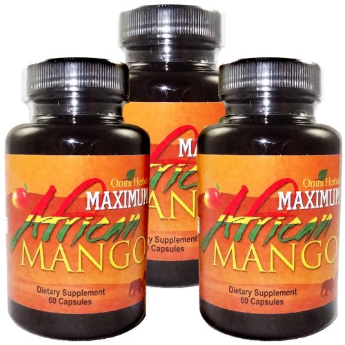 Maximum African Mango - 100% Pure African Mango Plus Guarana - Kola Nut - Green Tea - Advanced Weight Loss Supplement - High Potency - Appetite Suppressant - Energy Boosters - Fat Burner - Slimming - Highest Quality - All Natural - No Caffeine Added - 450 mg per Capsule (3 Bottles - 3 Month Supply) Reviews