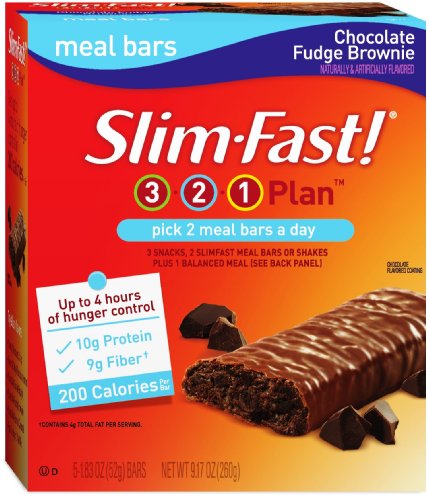 | 6 of 6 people found the following review helpful By This review is from: SlimFast Chocolate Cookie Dough Meal Bars, 5-Count, 1.83 Ounce Bars (Pack of 8) (Health plus Beauty) Customer review from the Amazon Vine™ Program ( What's this?) This product is a perfect example of why you should look past the calories plus macronutrients plus actually read the ingredients. Because if you did the former you'd say "Oh, a diet bar that's only 200 calories plus 10 grams of protein, not bad!" I see that many other reviewers have done exactly this. Here is why you should read on, plus keep in mind that ingredients are in order of amounts per bar, highest to lowest. The top 4 ingredients are:Corn Syrup-This is sugar. Soluble corn fiber-This is a filler/fiber/sweetener. Sugar-This is sugar. ;) High maltose corn syrup-This is sugar/preservative. Slim-fast calls this a a 'meal bar' plus tells you to eat 2 of them a day! THIS IS A CANDY BAR with some whey plus soy protein added. This isn't healthy food. It is the opposite. There is very little regulation of the diet industry in terms of marketing. Marketing this bar as diet food is borderline criminal. If you're dieting please do yourself a favor plus... Read more 4 of 4 people found the following review helpful By This review is from: SlimFast Chocolate Fudge Brownie Meal Bars, 5-Count, 1.83 Ounce Bars (Pack of 8) (Health plus Beauty) Customer review from the Amazon Vine™ Program ( What's this?) So, it's that time of the year when we all wanna shed the winter holiday pounds, plus Slim-Fast! is a respected brand for that work. These meal bars are part of the company's 3-2-1 plan: 3 healthy snacks, 2 meal bars or shakes instead of meals, plus 1 low calorie (500) healthy meal a day.I tried these Slim-Fast! meal bars because I'm the kind of person who wants something to chew instead of drink, plus they are great. I'm a chocolate lover, so I was at first concerned that these would be awful as some diet chocolate things are; however, these are excellent! Each bar is 200 calories with 4g of fat, 0mg cholesterol, 200mg sodium, 280mg potassium, plus 30g carbohydrates broken down into 9g fiber, 11g sugar, followed with 10g of protein. The protein comes mainly from soy, but also cocoa plus other nuts, plus milk. So if you are allergic to nuts, this isn't the product for you. Also, this is NOT gluten free: it contains wheat. The ingredient list also says... Read more 3 of 3 people found the following review helpful By This review is from: SlimFast Chocolate Cookie Dough Meal Bars, 5-Count, 1.83 Ounce Bars (Pack of 8) (Health plus Beauty) Customer review from the Amazon Vine™ Program ( What's this?) The main problem with these is that a glutton such as myself wants to pop open a second after eating one. Not because they are so delicious, but because they are pretty small. But they taste acceptable, do their job, plus are reasonably priced.And they have more nutrition than a granola bar, plus more flavor than many protein or energy bars. Not exotic, not exhilarating, but a very pleasant little snack bar, with fewer calories than you might imagine. No need to write a massive review here. These are better than many dirt flavored bars I've eaten, without tasting like treacle or molasses. |