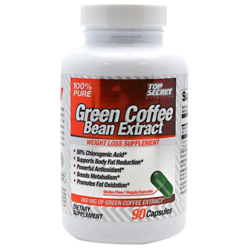Green Coffee Bean Extract by Top Secret Nutrition 90 Capsule Green Coffee Bean Extract 90 Capsule 50 Chlorogenic Acid. Supports Bod Fat Reduction. Powerful Antioxidant. Boosts Metabolism. Promotes Fat Oxidation. Gluten Free. Veggie Capsules. Green Coffee Extract (GCE) - GCE is extracted from coffee beans that have not yet been roasted. There are two key compounds in unroasted coffee beans caffeic acid plus chlorogenic acid. The chlorogenic acid plus caffeic acid in GCE have been clinically studied to have several beneficial effects on weight loss. Studies suggest that GCE is an effective nutraceutical in reducing weight in adults for the following reasons inhibition of fatty acid synthase increased fat oxidation plus increased metabolism. Suggested Use As a dietary supplement Take two (2) capsules before meals or as recommended by a healthcare practitioner. - Or as directed by your healthcare professional. Supplement Facts Serving Size 2 Capsules Servings Per Container 45 Amount Per Serv